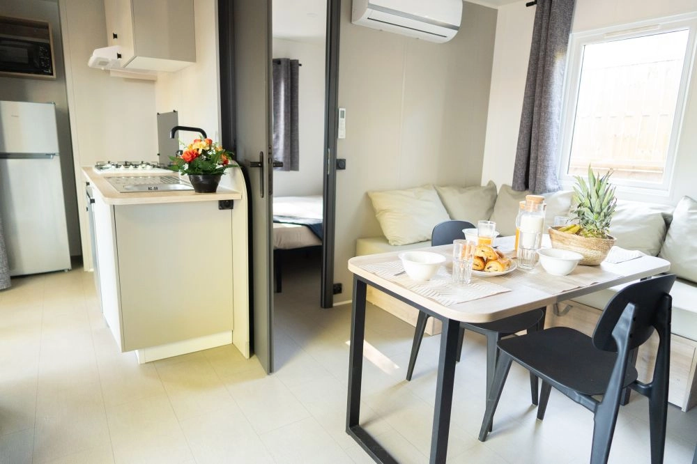 Ce spacieux Cottage de 40m² est idéal pour des vacances conviviales en famille ou entre amis dans notre camping à Vic-la-Gardiole.