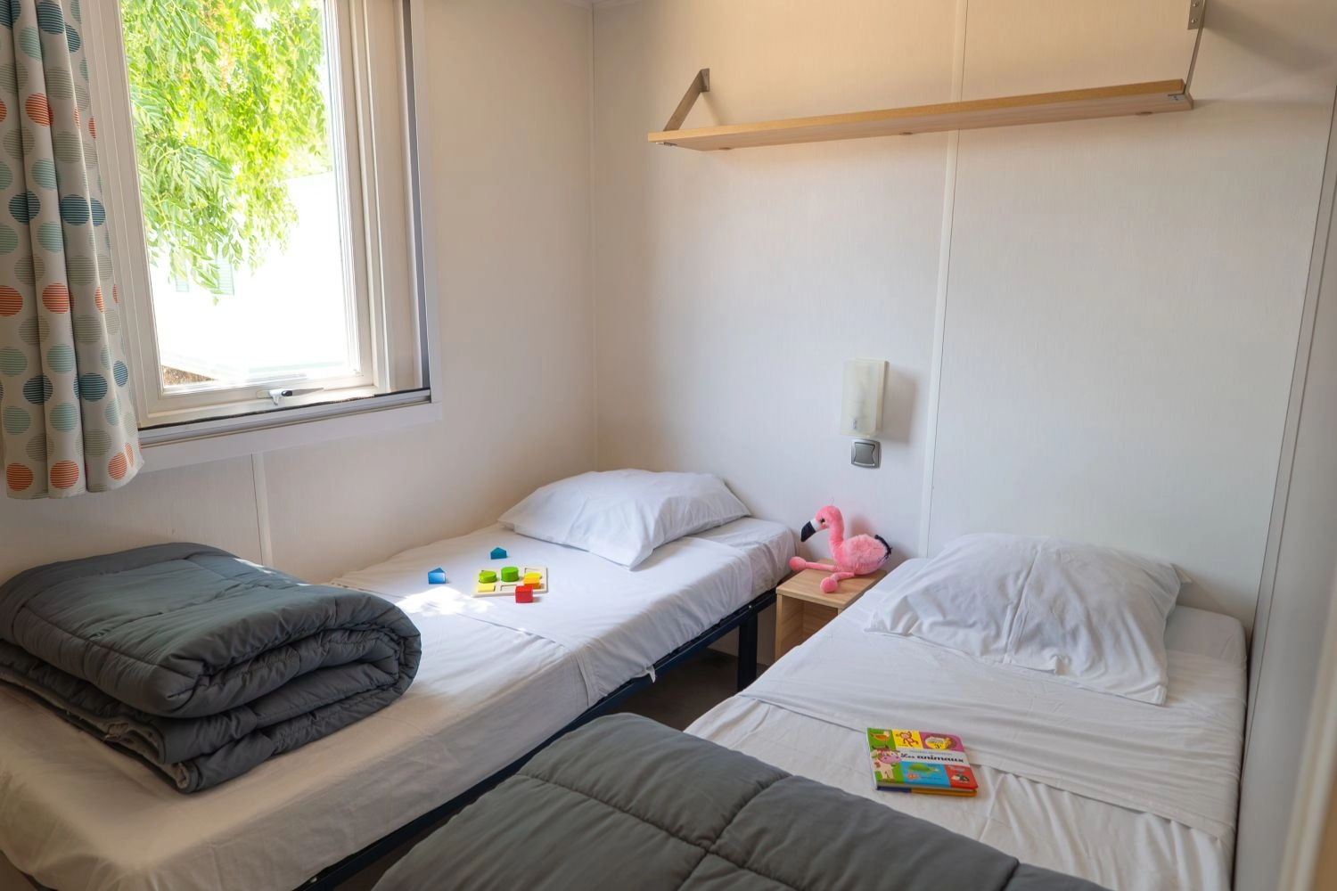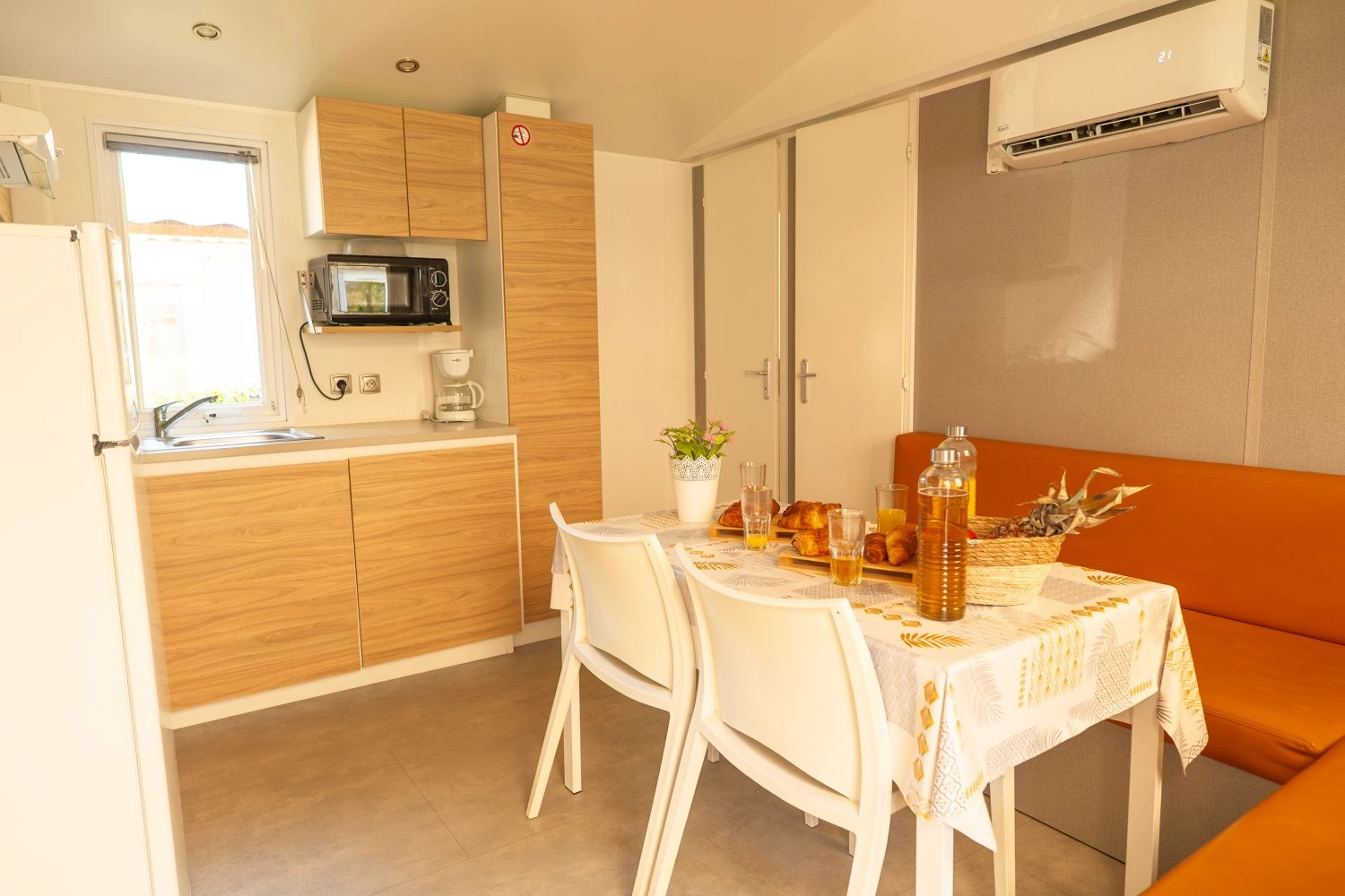 Notre camping vous propose à la réservation un Mobil-home de 21m² pensé pour accueillir jusqu’à 4 personnes.