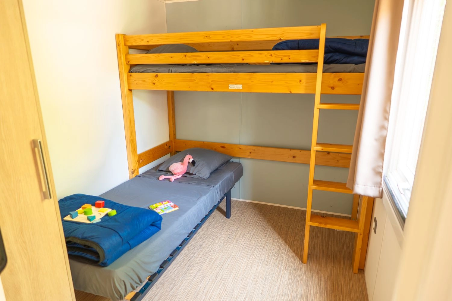 Idéal pour accueillir jusqu’à 4 personnes, il se compose de 2 chambres : une chambre avec un lit double de 140x190 et une chambre avec deux lits simples de 90x190.